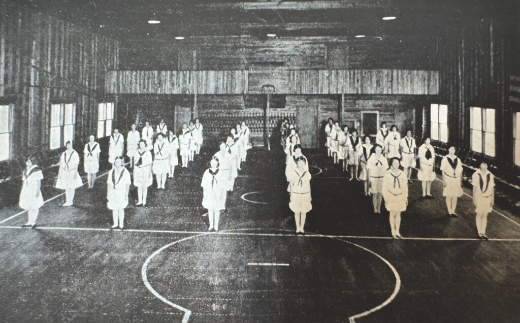 Left to right: Concordia School gym exterior, c. 1920, courtesy Florida Publishing Co.; Concordia School gym interior, 1923, courtesy City of Jacksonville.