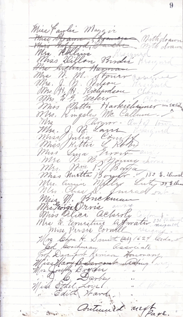 Friday Musicale club minutes, 1893, courtesy Friday Musicale.