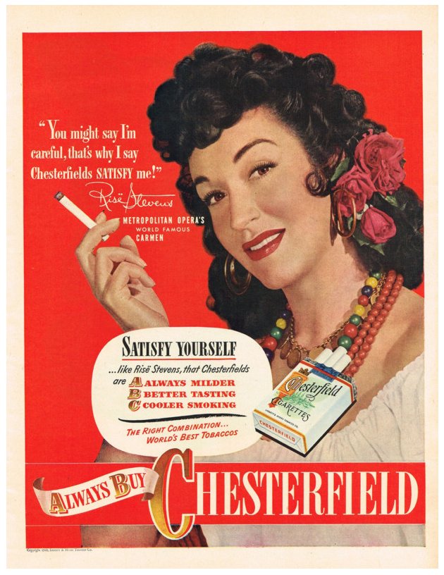 Soprano Risë Stevens in Chesterfield ad, c. 1950, courtesy National Endowment for the Arts.